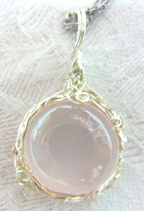 とっても透明度が高い可愛らしいローズクォーツのカボションのペンダント。